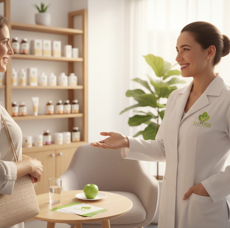 En Vía Verde ofrecemos asesoría especializada sobre el uso y beneficios de nuestros productos naturistas. Nuestro equipo de nutriólogos certificados te ayudará a encontrar las mejores opciones para tu bienestar integral.
